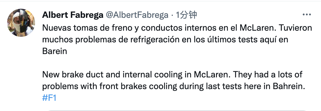 根据西班牙记者Albert Fabrega发的图片,迈凯轮更换了新的刹车导管和内部冷却系统。迈凯伦车队在巴林测试中因为刹车过热,出现了很多问题。