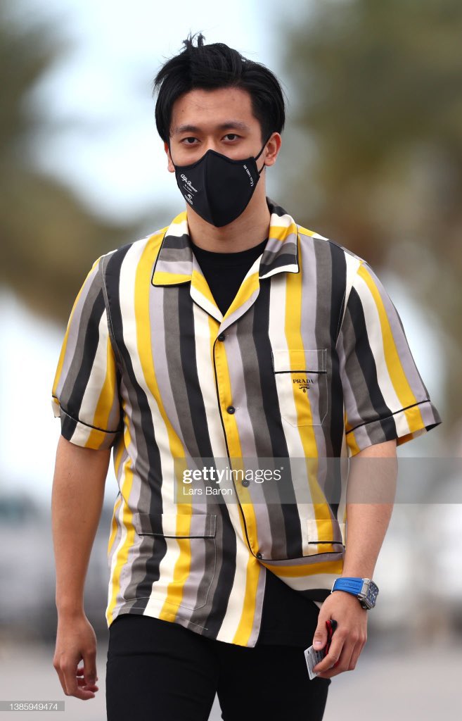 周冠宇现身围场,身穿黄色条纹衬衫