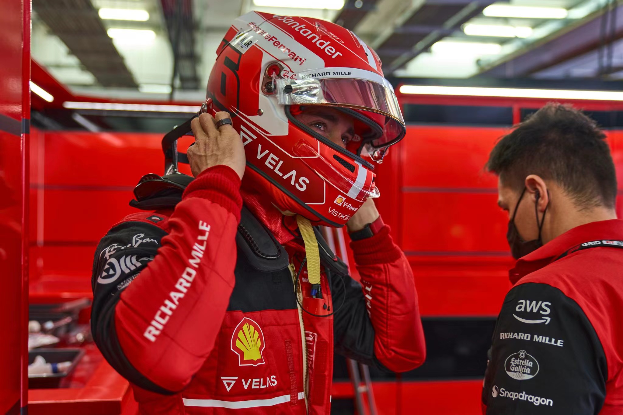 在接受意大利天空体育采访时,勒克莱尔说:“我们现在状态不错,我比较满意。就目前情况看,我们仍然落后于红牛,第二节和第一节练习赛我们使用的调校有一点不同,明天还有很多工作要做,希望我们能够拿到杆位,前排发车。”