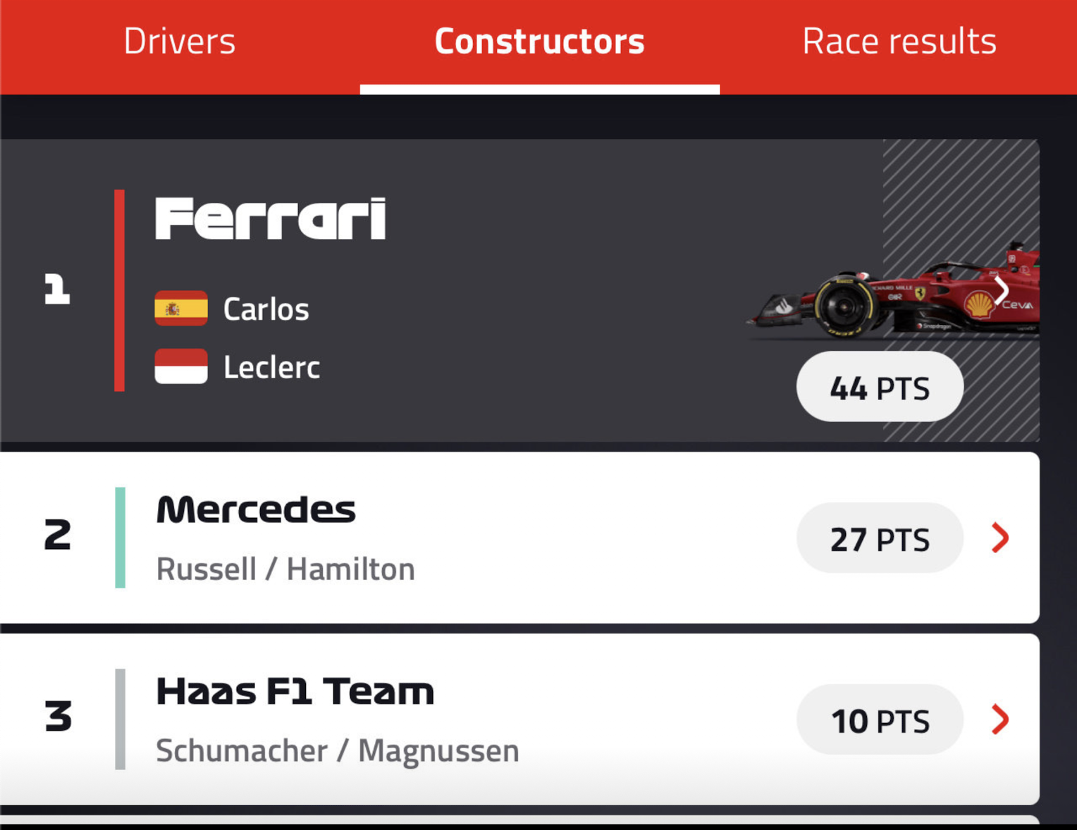 首战结束后的车队积分榜,去年一分未得的哈斯高居第三。