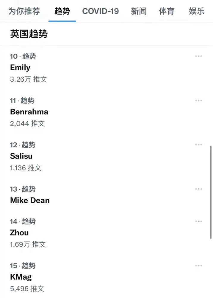 周冠宇现在不仅是国内微博热搜第一,也登上了英国推特趋势榜第14名。