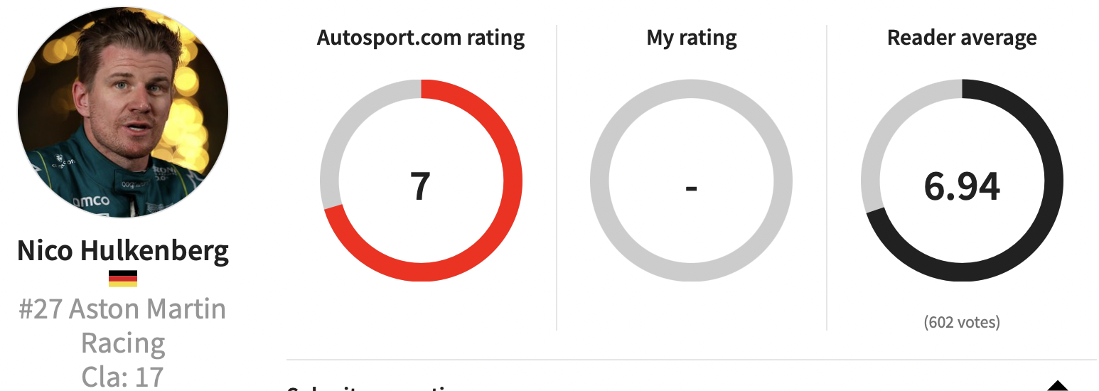 Autosport邀请网友,对巴林站各位车手表现进行评分。红色代表网站打分,黑色代表车迷打分。你也来给各位车手打个分,评选一下心目中的TOP3吧。