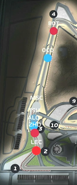 博塔斯出完站正好压在后面奥康前面,也在米克、角田和头哥前。