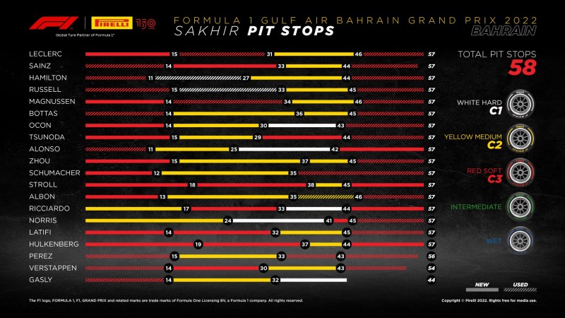 比赛中只有七名车手使用了C1硬胎,与C2和C3相比,它的性能更加稳定,但预热时间要长得多。每位车手都使用了C2和C3轮胎,这与倍耐力赛前的预测一致。