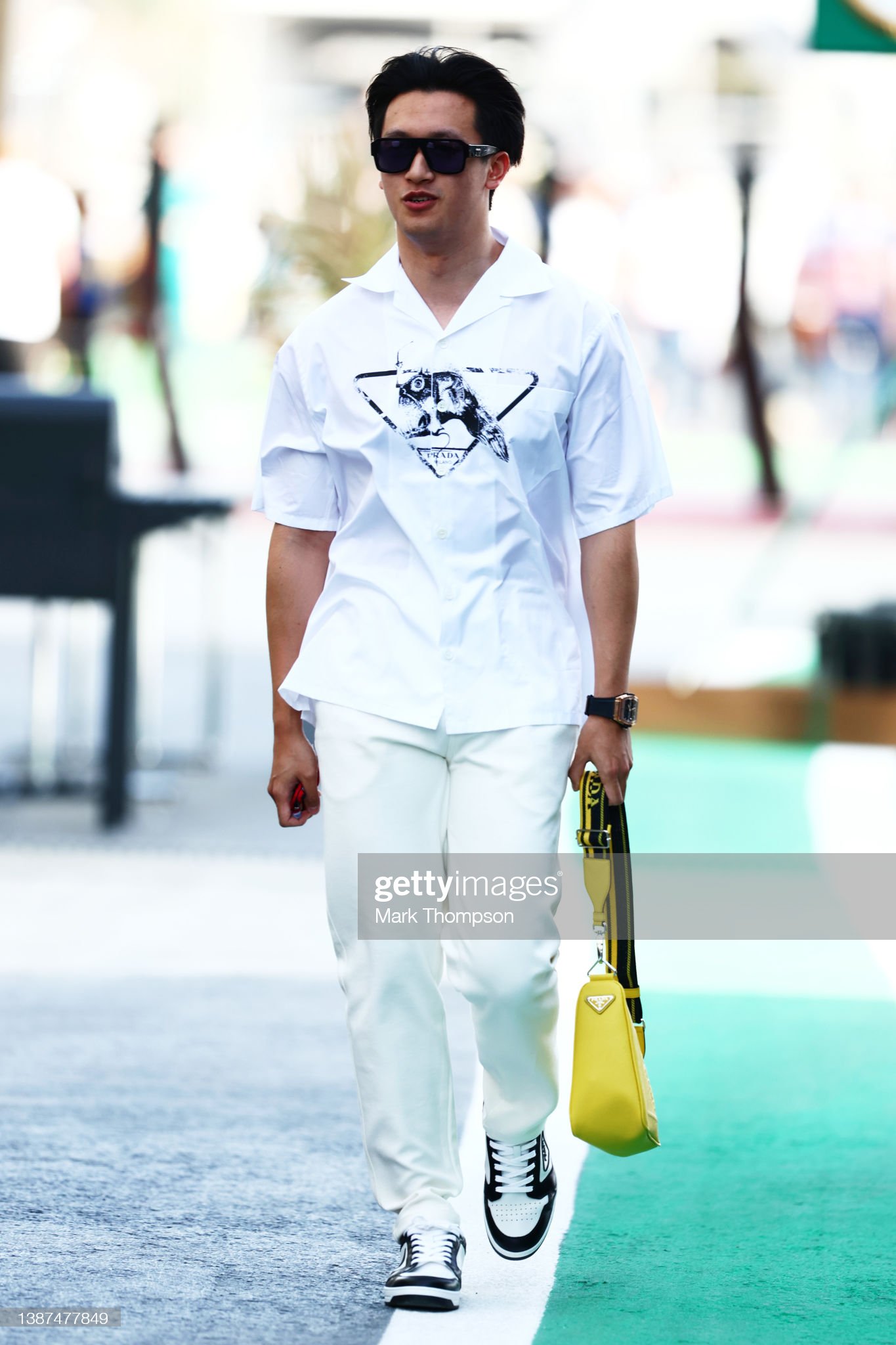 周冠宇抵达吉达赛道,他一身Prada的打扮也非常时尚。