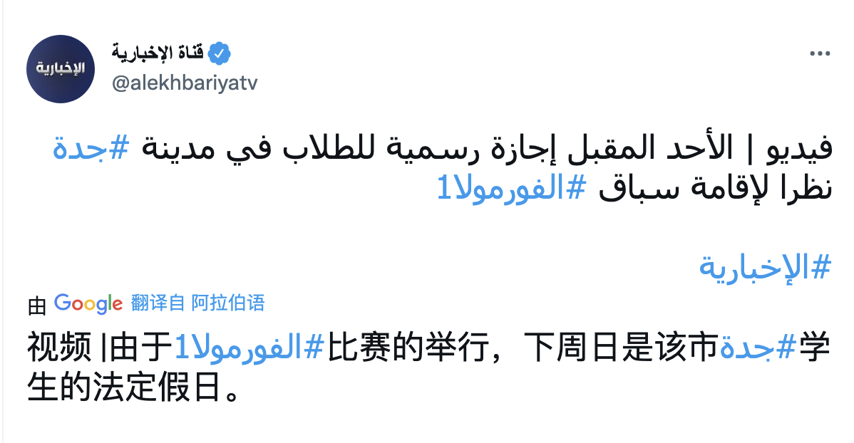 吉达市宣布,由于F1比赛的举办,周日将是该市所有学生的节假日。在沙特,周日原本是法定工作日,而周四、周五才是节假日。