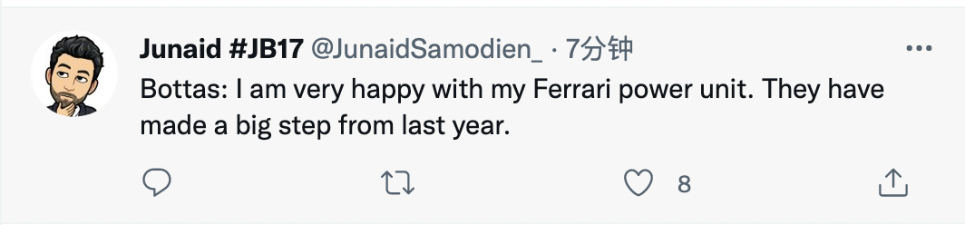 博塔斯在周五的新闻发布会上表示,他对法拉利引擎很满意。引擎比起去年有了很大的提升。
