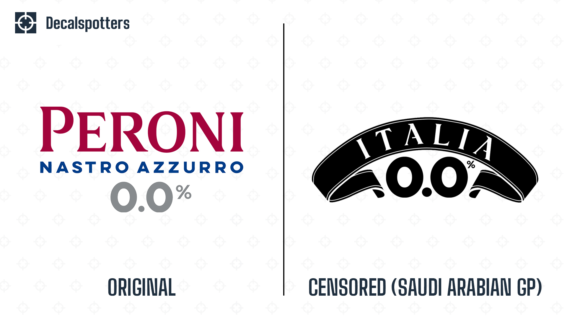 阿斯顿马丁将之前的“Peroni”商标换成了“ITALIA(意大利)”,下方写着“0.0%”