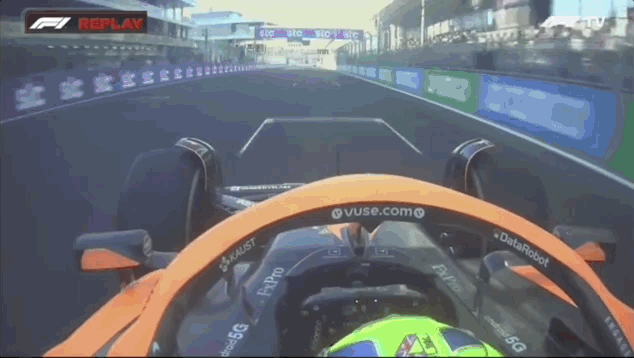 19分钟时,一块儿50米提示板从护墙掉落,被诺里斯撞坏,赛道上出现大量碎片,赛会出动红旗。此时两位法拉利车手还未做出成绩。