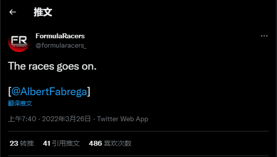 据知名Twitter赛车新闻博主@Formularacers,沙特站比赛确认将继续进行。