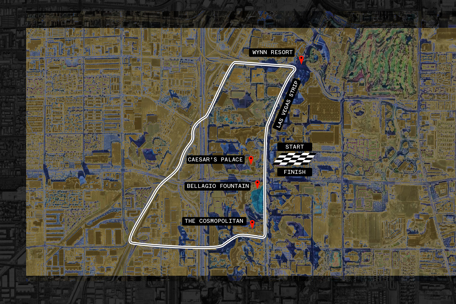 发车直道将设在凯撒宫前,途经拉斯维加斯几座著名酒店以及百乐宫前喷泉。