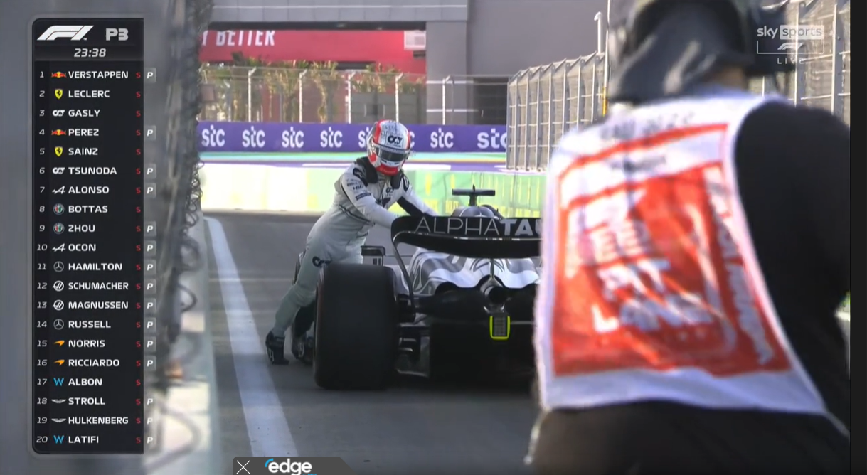 【沙特站三练】加斯利赛车受损,自己下来推车