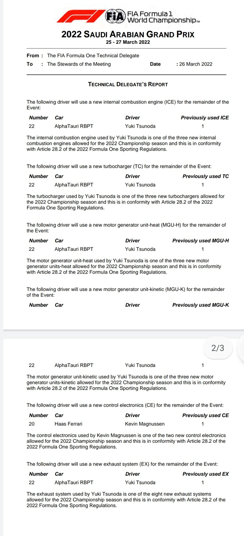 根据F1报告,角田裕毅在昨天练习赛中赛车出现问题之后,开启了新的动力单元套件。