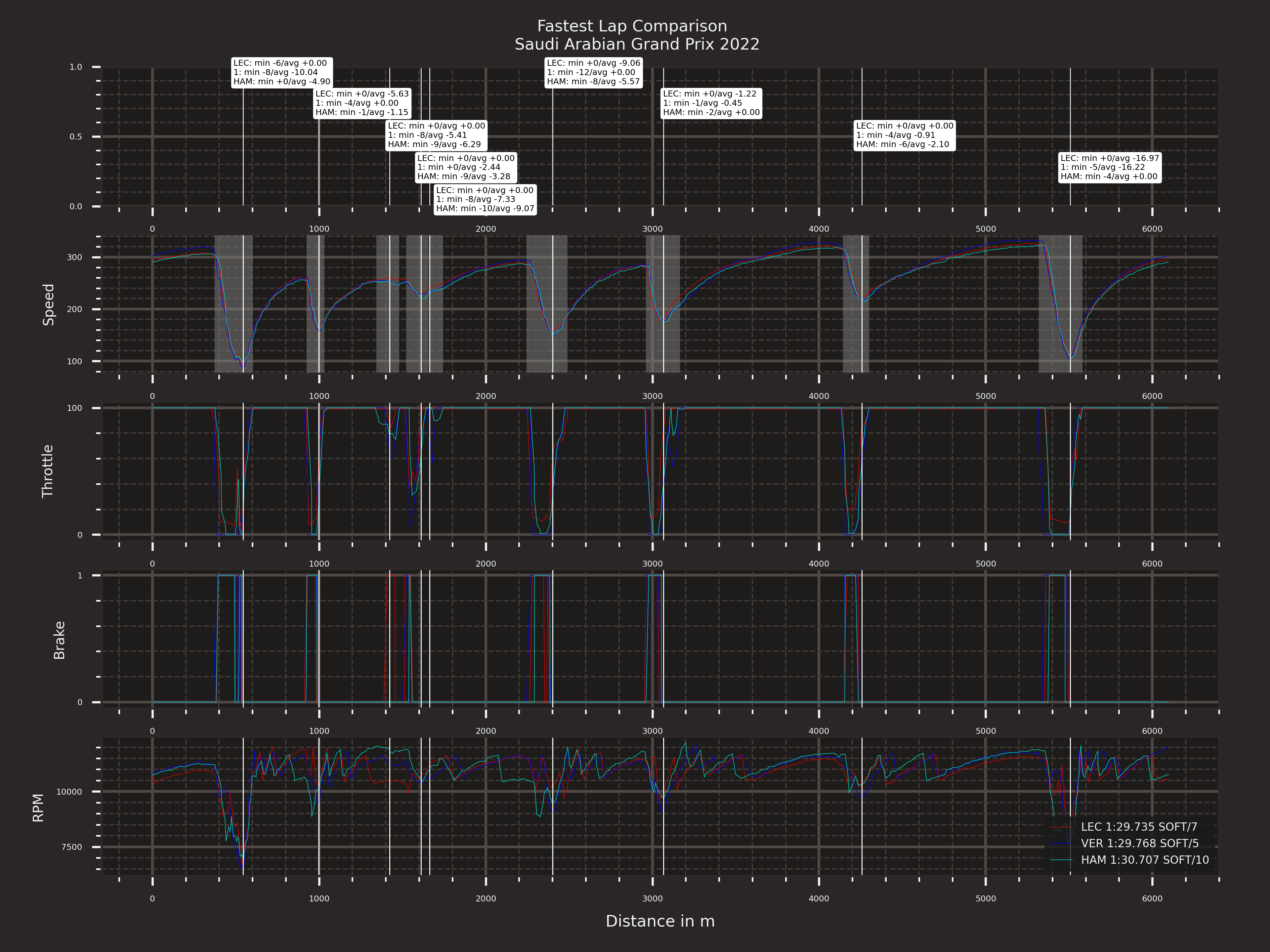 勒克莱尔、维斯塔潘、汉密尔顿三练圈速对比