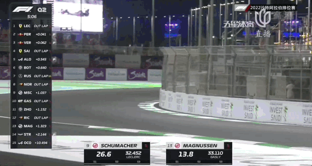 沙特站排位赛Q2结束,周冠宇第13,博塔斯第六。拉塞尔排名第十,惊险晋级。