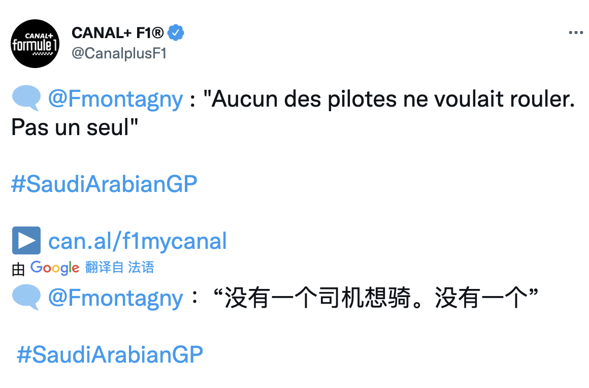 据法国媒体Canal+报道,没有一位车手想进行这场沙特站的比赛。