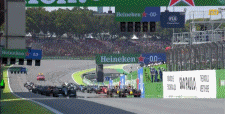 回顾比赛,五盏红灯熄灭后,维斯塔潘起步优秀,占据内线过掉博塔斯,不久,博塔斯在4号弯出弯时走大,被佩雷兹超越,红牛一二领跑。塞恩斯在发车时与诺里斯的轮胎发生擦碰,导致后者爆胎。汉密尔顿起步迅速来到第六,随后顺利过掉前面的维特尔和勒克莱尔,随着队友让车,汉密尔顿来到第三,与维斯塔潘的差距为5秒左右。