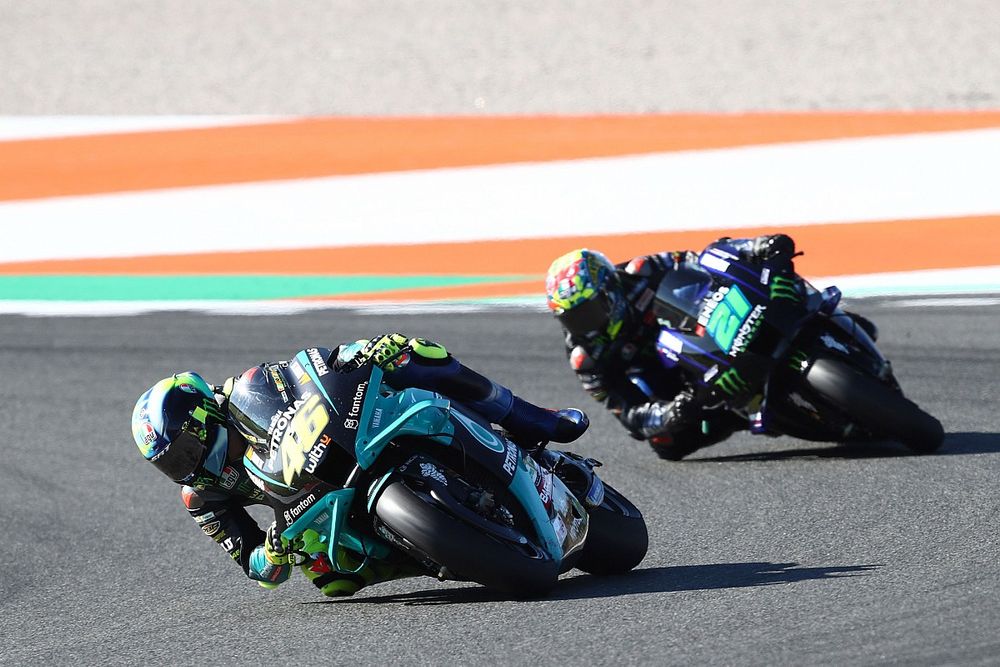 MotoGP收官战正赛中,雅马哈厂队车手弗朗科·莫比德利一直跟在自己的导师瓦伦蒂诺·罗西身后,“护送”着他完成了职业生涯最后一场比赛。最终,罗西取得圆满的第10名,莫比德利则排名第11。