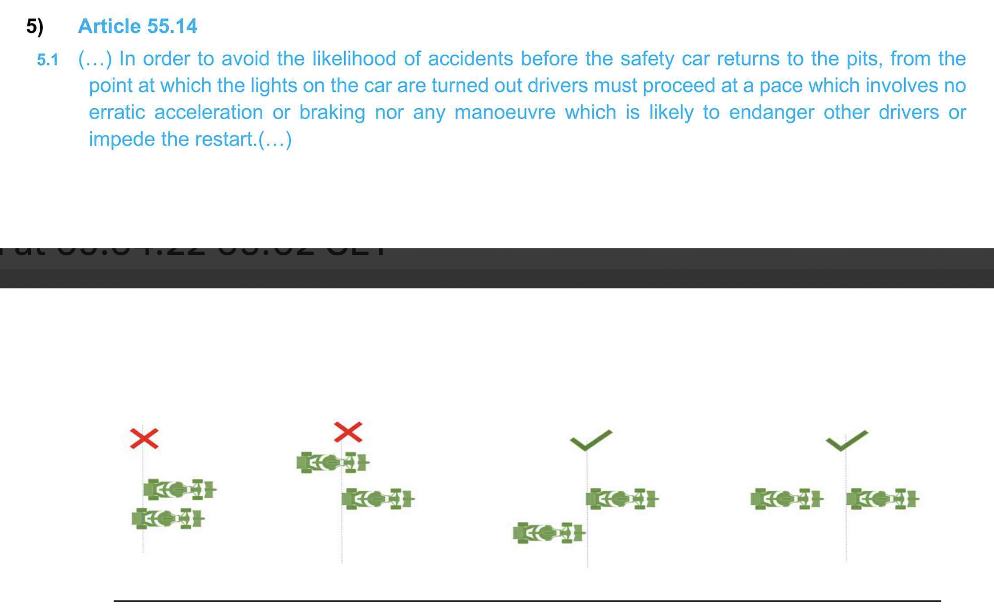 FIA发布了新的赛道笔记:在安全车回场圈离开之后,后车与前车不能并排行驶。