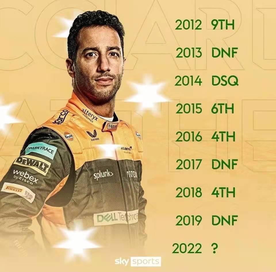 那么,即将进行的比赛上,里卡多能取得第几呢?