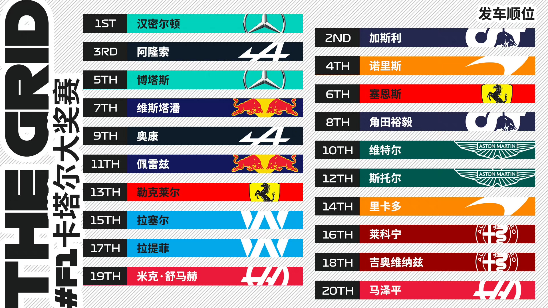 最终发车位:汉密尔顿、加斯利头排发车,维斯塔潘第7起跑