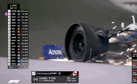 51圈和52圈,拉塞尔和拉提菲分别爆胎。