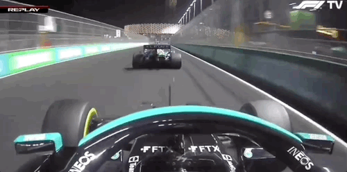 第15圈,重新静态起步,前四发车为维斯塔潘、汉密尔顿、博塔斯、奥康。在维斯塔潘进入发车格前,汉密尔顿在后方尽力压车,意在让维斯塔潘轮胎温度下降。